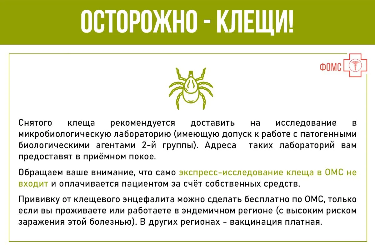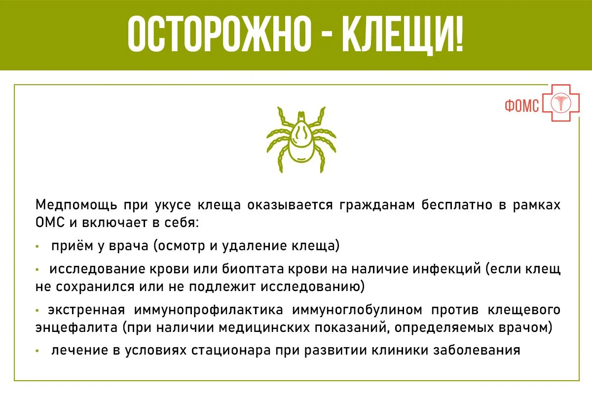 Чем опасны проснувшиеся иксодовые клещи, какая медпомощь доступна по ОМС и что делать в случае, если вас укусил клещ? - смотрите #инфокарточкиФОМС